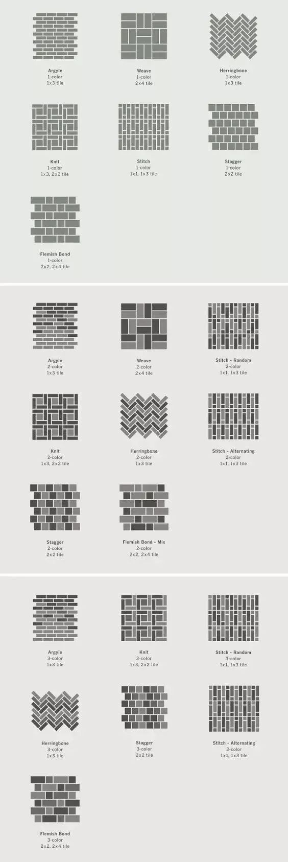 除此之外还有其他的铺法,可以和其他材质,例如与砂砾、小花砖等相互交织碰撞,擦出新的火花。